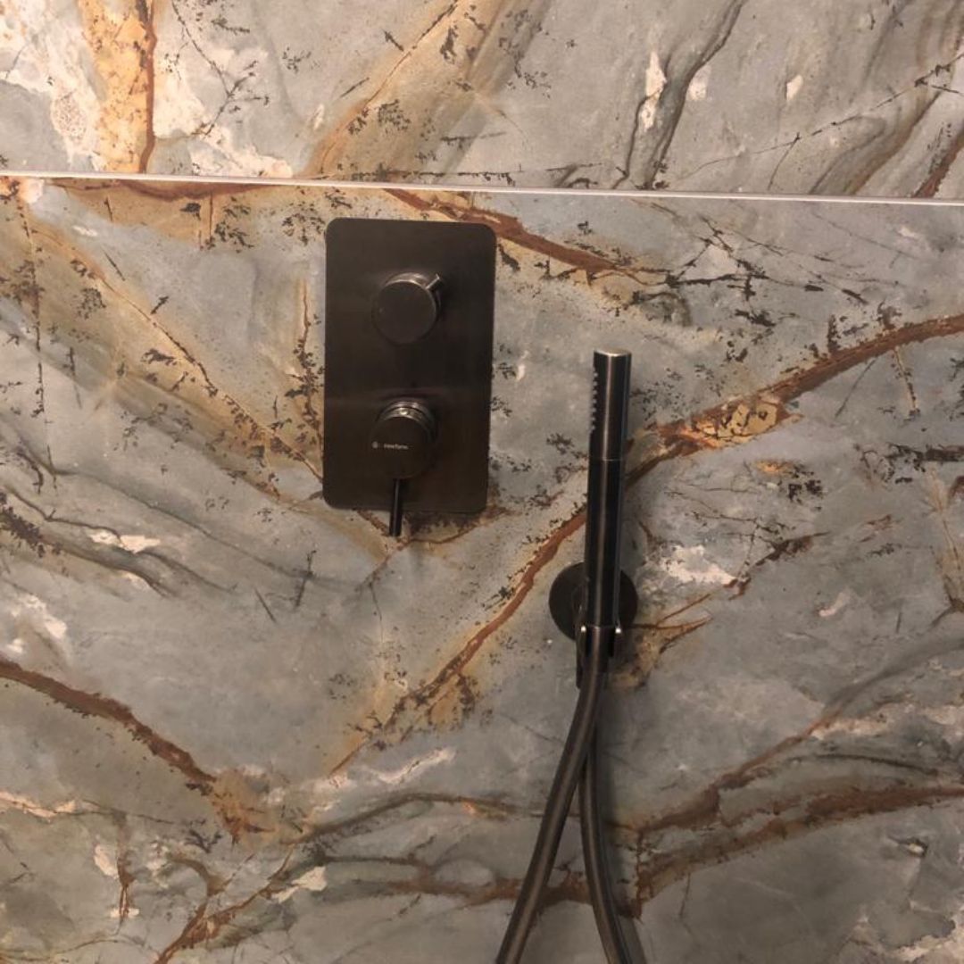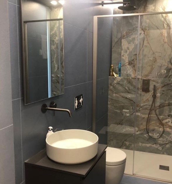Il bagno Italgraniti Nuance Cielo è un perfetto esempio di eleganza e armonia cromatica. Il rivestimento 60×120 Italgraniti Nuance Cielo avvolge le pareti, creando un’atmosfera luminosa e sofisticata, mentre la doccia, rifinita con il rivestimento Roma Imperiale opaco 120×120, aggiunge un tocco di prestigio con la sua texture ricercata. Il pavimento in gres porcellanato 60×120 Nuance Cielo completa lo spazio, garantendo continuità estetica e resistenza.