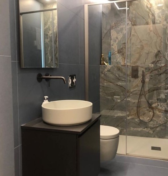 Raffinatezza e armonia cromatica con il bagno Italgraniti Nuance Cielo