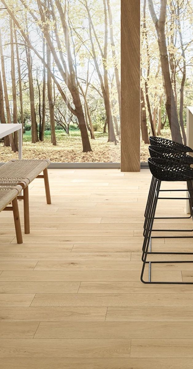 L’accostamento tra legno e ceramica crea giochi di materiali di grande effetto, soprattutto in open space e ambienti multifunzionali. Il contrasto tra superfici diverse esalta l’estetica degli spazi, unendo praticità ed eleganza.