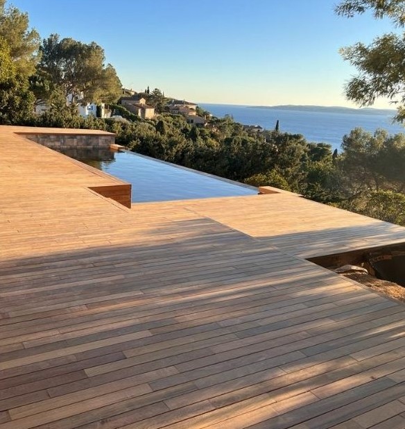 Per l’area esterna di una piscina in una villa, la pavimentazione effetto legno rappresenta una scelta elegante e funzionale. Con il pavimento Déco, è possibile coniugare il calore e la bellezza naturale del legno con la praticità e la resistenza di materiali innovativi.