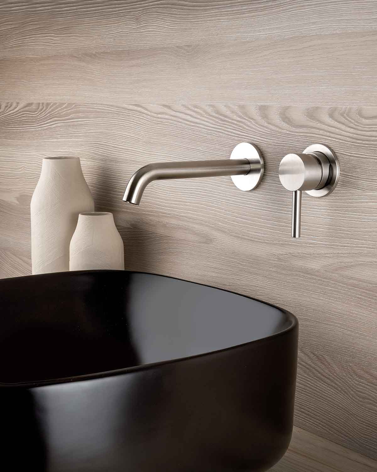 Il miscelatore lavabo a parete della linea XEM di Crolla è realizzato in acciaio AISI 316, progettato per garantire robustezza e un design contemporaneo. La parte incasso offre un’installazione elegante e discreta, rendendo questo miscelatore un’ottima scelta per ambienti moderni.